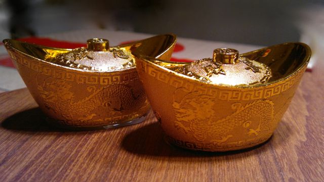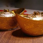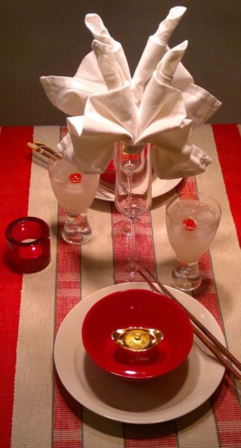 Kattauksessa hyödynnettiin joulun jäljiltä punaista väriä. Kultaa kattaukseen toi Uuden vuoden onnen karkit – ei siis keksit, kuten Ginger ajatuksissaan oli pakkauksesta lukenut (cookie – candy). Selkokielisiä ennustuksia ei siten uudelle vuodelle saatukaan, unelmat vuodelle 2012 jääköön salaisuuksiksi.