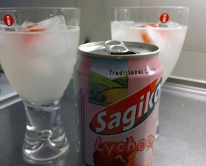 Valmistelujen jälkeen päästiin syömään. Alkumaljana Ale tarjoili litsijuomaa vodkalla terästettynä ja kirsikalla koristeltuna.