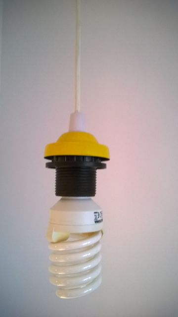 Siispä lampun tuunaukseen. Keittiön kattovalaisin kun on väliaikainen viritys ja tyyliltään lähinnä… hmm… opiskelijakämppä. Energialamppuvalintakin on varsin käytännöllinen. Nätimpiäkin on olemassa.